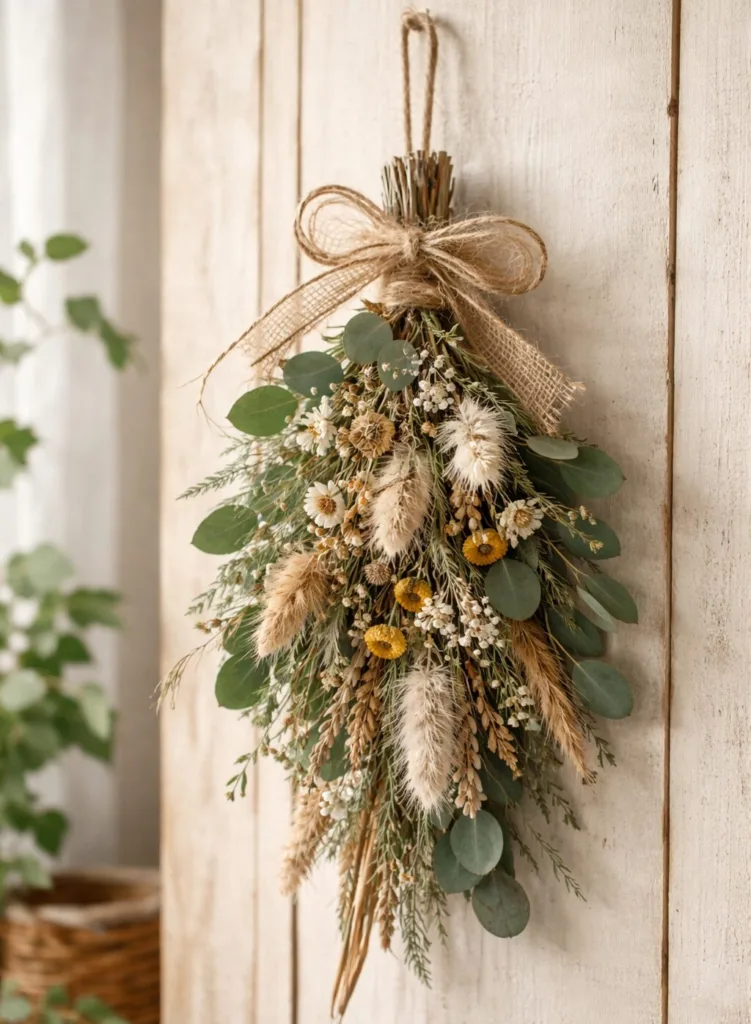 スワッグとは、花や葉を束ねて飾るシンプルな壁飾りのことです。