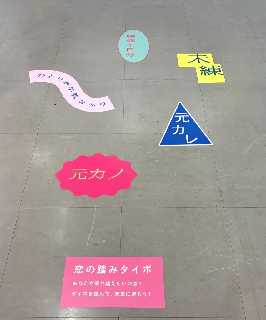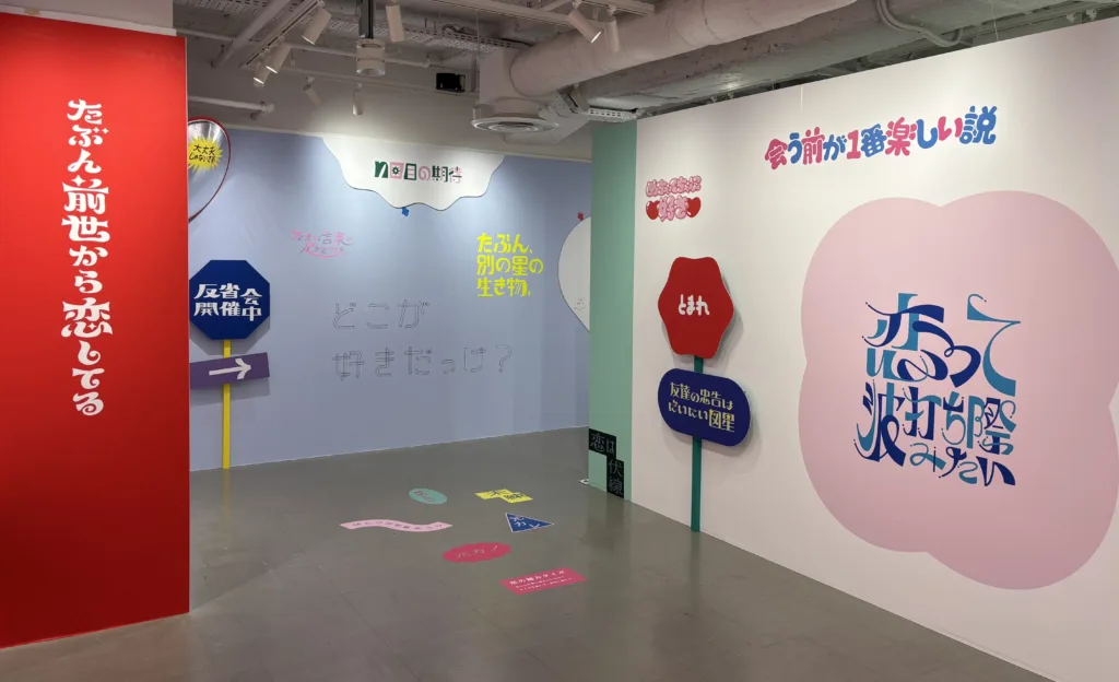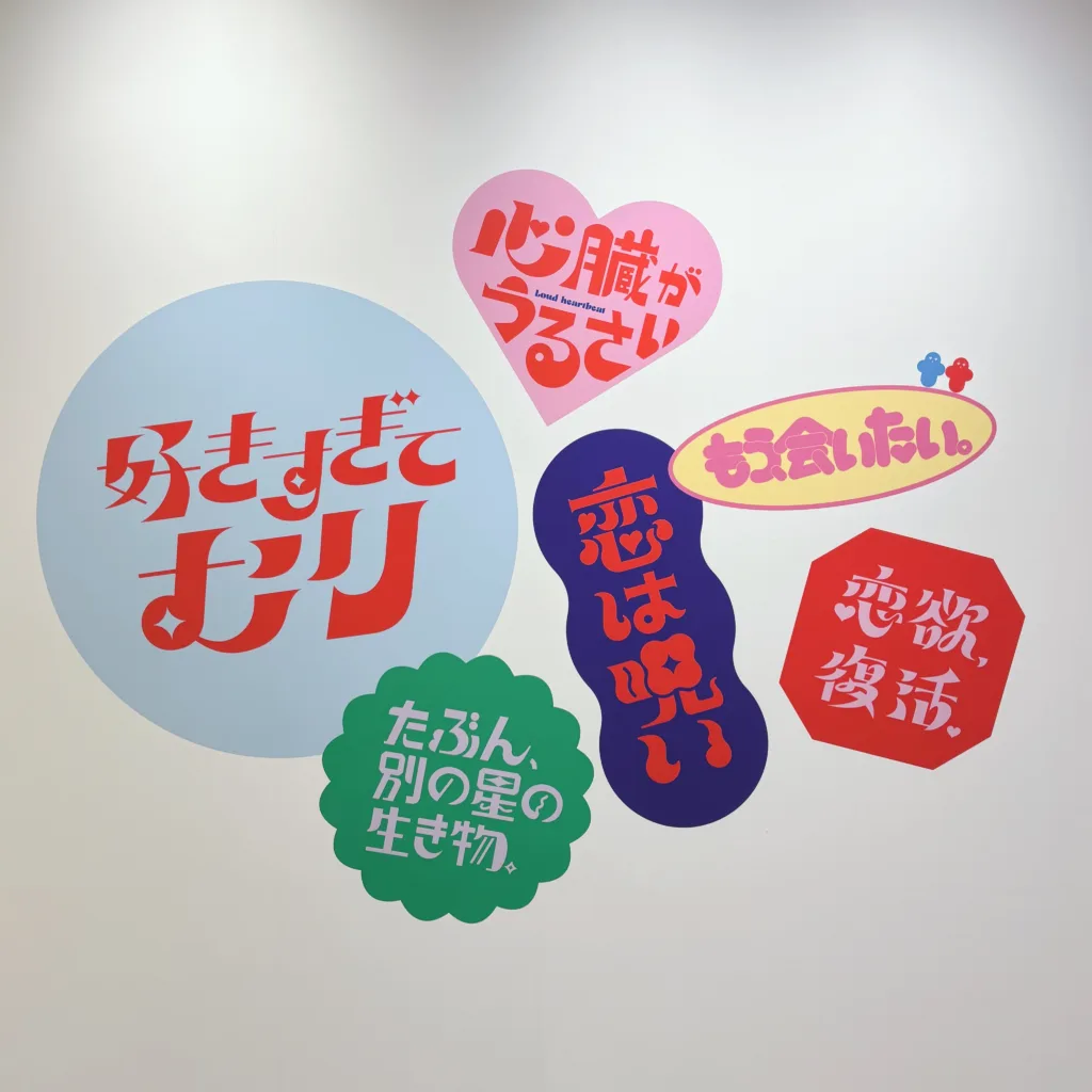 「恋」のあるあるや共感性の高い言葉を可愛い「タイポグラフィー」で表現した展示内容です。