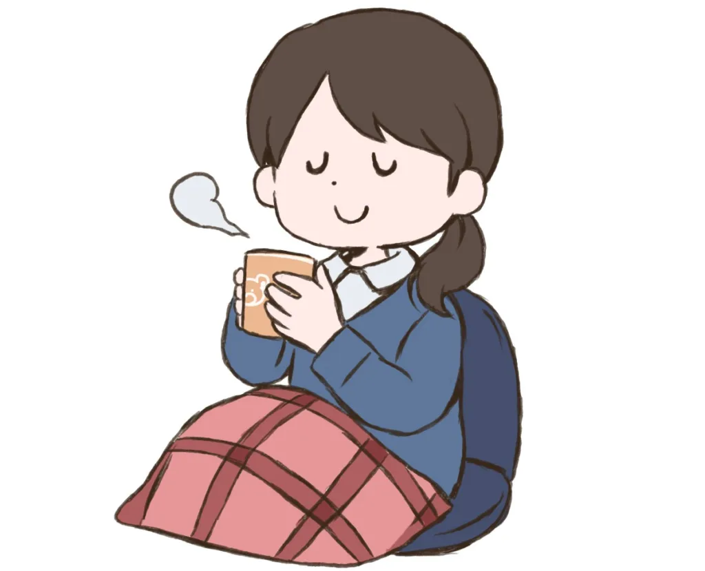 • 温かいお茶を一口飲む