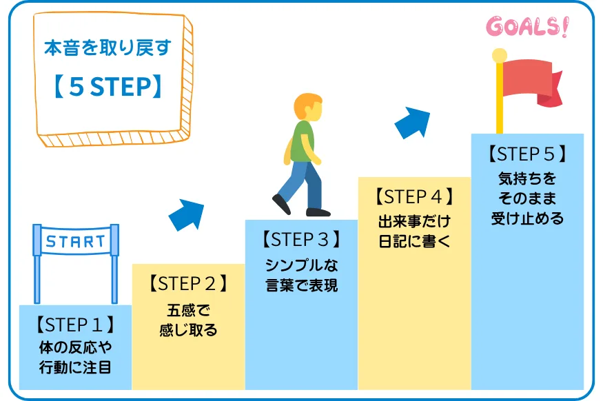 この記事では、「自分の本音がわからない状態」と向き合うための方法を、5つのステップに分けてご紹介します!